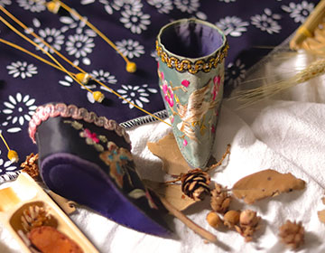 小村口,大樹(shù)下,老奶奶正低頭一針一線(xiàn)地納著鞋底,手上拿著的針頭,時(shí)不時(shí)往花白頭發(fā)里蹭蹭,邊上的笸籮里放著紙樣、布片、麻繩和錐子。